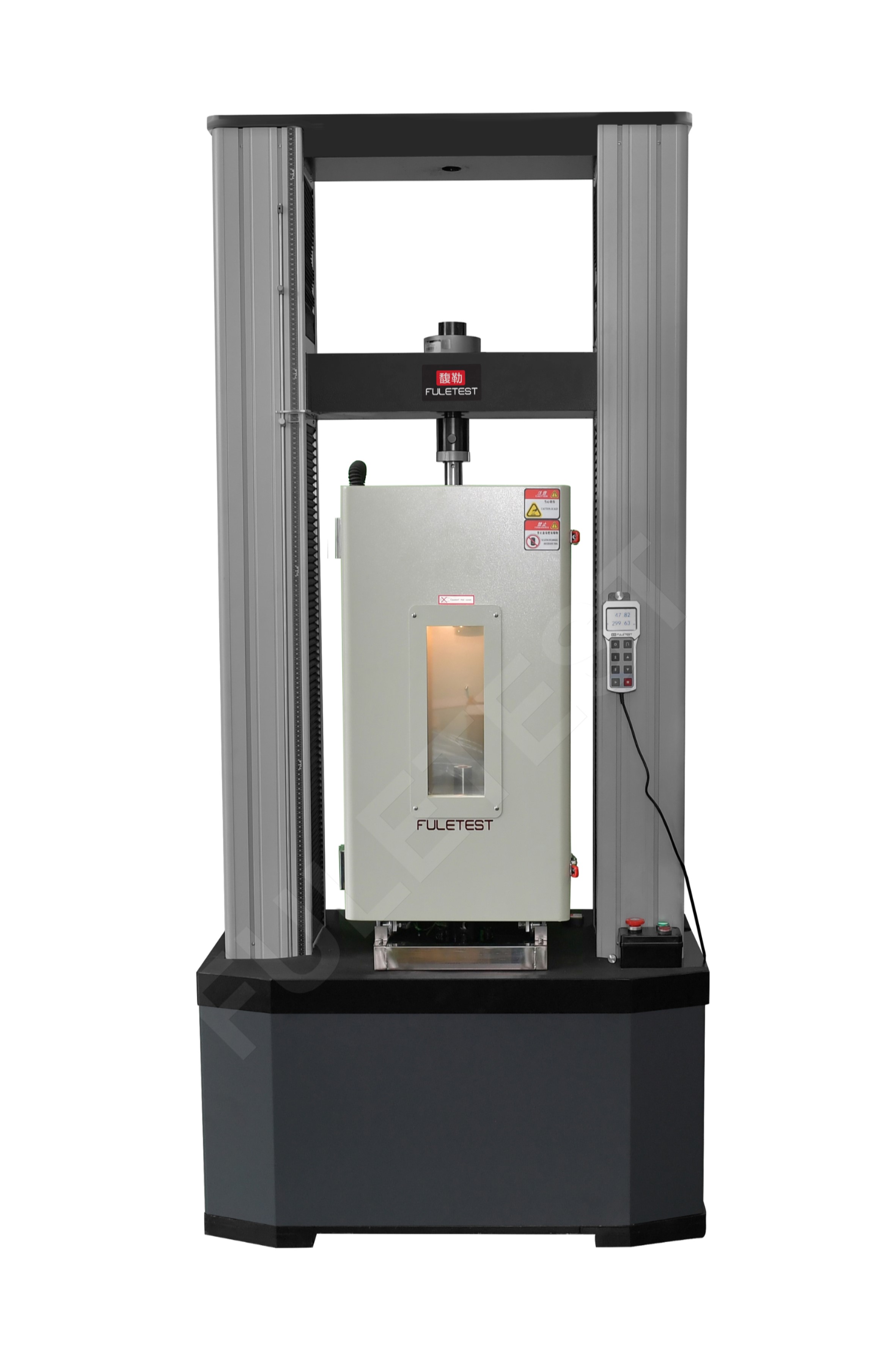 馥勒试验机用高低温箱测温范围宽广、功能多且易于使用。可根据需要配置湿度测试条件。配合橡胶塑料复合材料和一般材料的测试应用程序,该装置容易安装、操作、维护,和在不同容量配置下适应更广泛的试样测试要求,它具有易用性、可满足实验要求范围广、适用夹具兼容性好、易于清洁和维护等特点 |